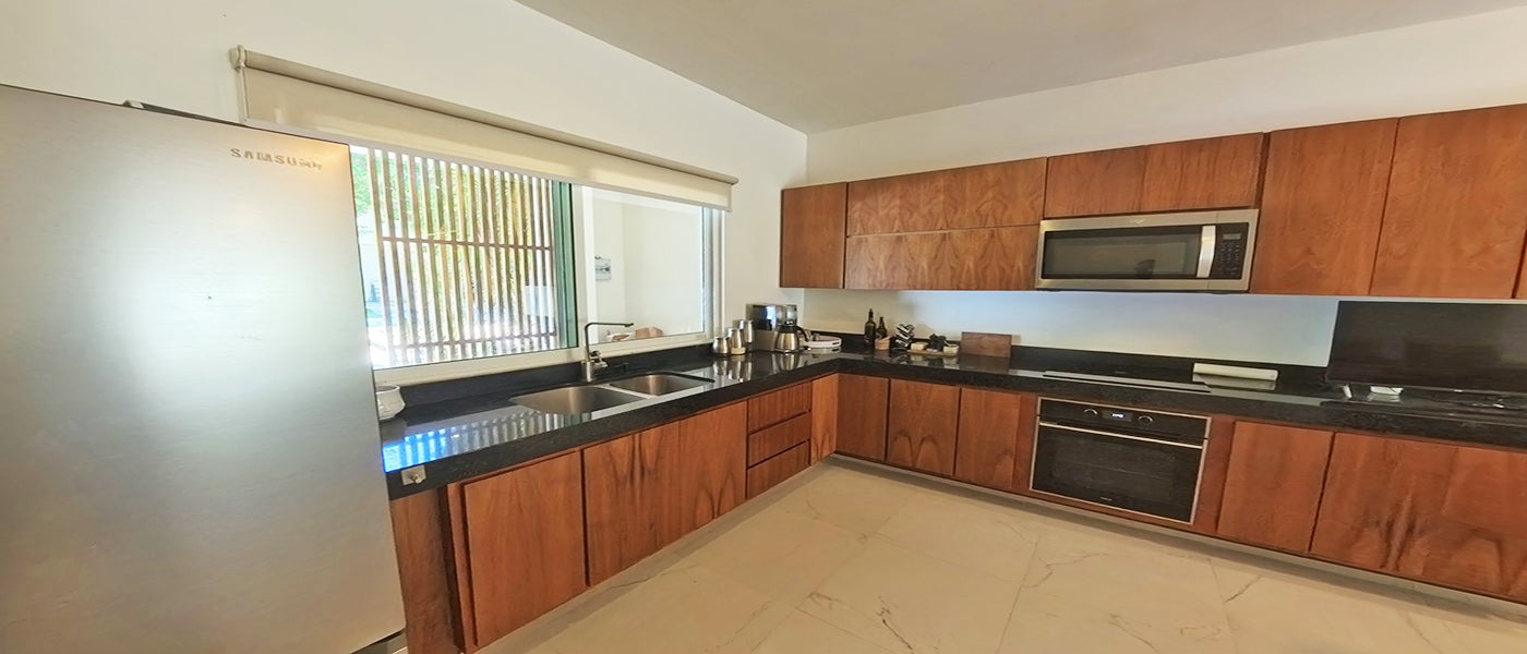 - The upper level, with a separate entrance and distributed over two floors, includes a second kitchen and five additional bedrooms, each with its own private bathroom and balcony, providing comfort, privacy, and excellent natural light.